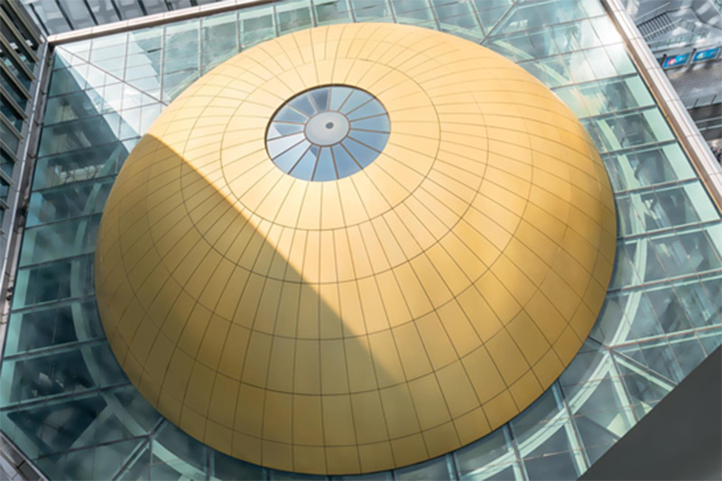 項(xiàng)目簡(jiǎn)介:深圳招商證券總部大廈位于超高層辦公樓云集的福田中心區(qū)南區(qū)、是招商證券股份有限公司在深圳建立的標(biāo)志性總部大樓。項(xiàng)目使用金色陽(yáng)極氧化蜂窩鋁板做了一個(gè)雙曲的球形構(gòu)筑物。